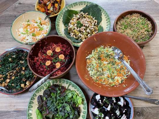 The cafe is famous for its wonderful salads, mainly gluten and dairy free, fresh, colourful and very seasonal. If you have ever wondered how our salads are prepared each day, this is the morning you should come to. Each season brings its own abundance and challenges, so the salads change as the year goes on.